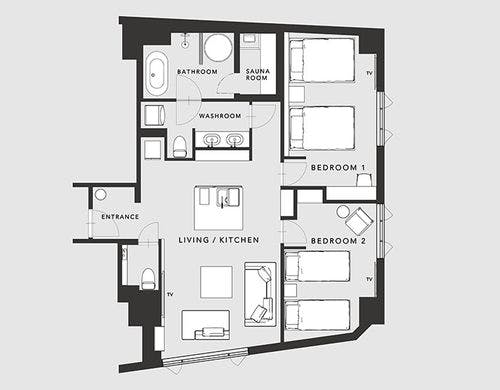 食事なし | トリプル以上 / プレミアスイート/キッチン(2ベッドルーム) / 77.30m2 禁煙 |