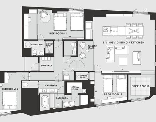食事なし | ロイヤルスイート(3ベッドルーム) / 159.40m2 禁煙 |