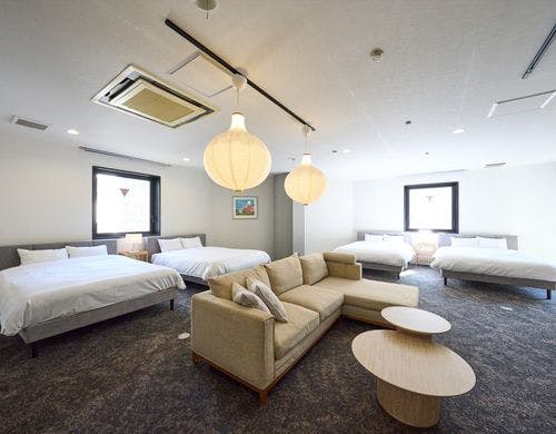 【素泊まり】関内ど真ん中、75m2を“みんなのリビング”に。8名で泊まれるダブル4台の広々ワンルーム
