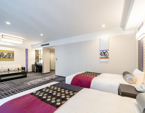 客室は多彩なバリエーションがあり、シングルやツイン、ダブル、和室、スイートルームなどが用意されています。特にプレミアムスーペリアフロアは高級感と安心感を兼ね備えた空間です。また、和室タイプは広々とした造りで、独立したバスルームやトイレを備えており、リラックスできる環境が整っています。