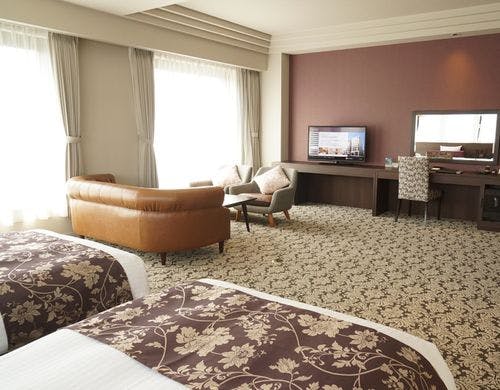 アルコールやお菓子も用意しているラウンジは宿泊者の利用が無料! 全室19以上の広々としたお部屋は空気清浄機も完備。
