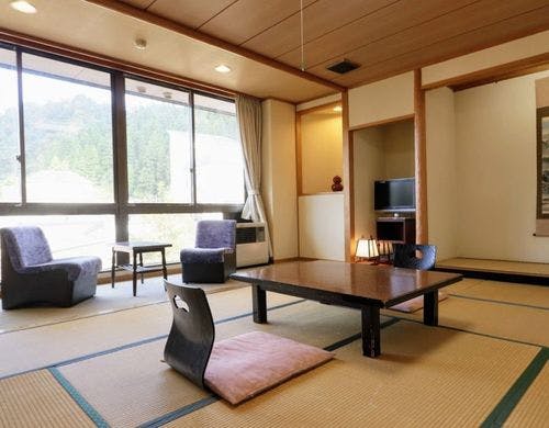 地産の食材をふんだんに使用。掛け流し屋上展望露天風呂が人気。温泉は美肌効果&「あったまり湯」として有名。