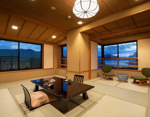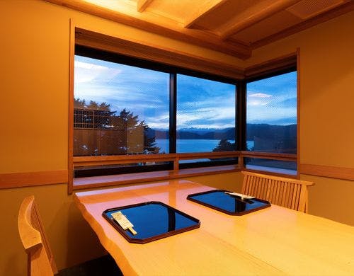 <夕朝食専用ダイニング>田沢湖畔に望み、「秋田の心」を伝える宿。丹念に仕上げた郷土会席を心ゆくまで。