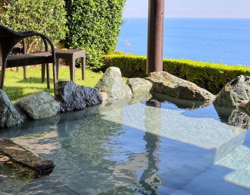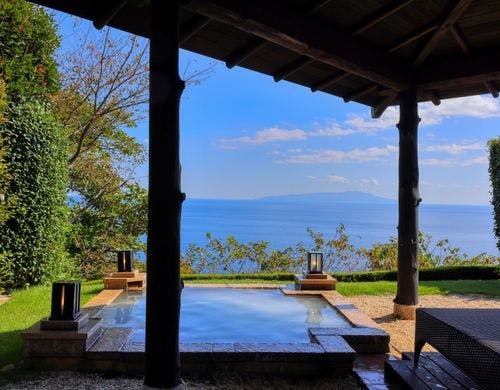 日本テレビ「一度は行ってみたい憧れの湯宿ベスト20」全国第1位!全室に伊豆の大海原と大島を眼前に望む絶景温泉露天風呂付。