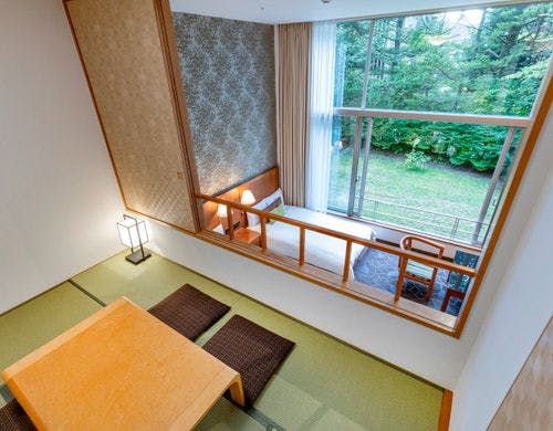駅から徒歩11分の歴史ある旧軽井沢の地に佇むリゾート。アウトレットや旧軽井沢銀座など徒歩圏内。大浴場やプールが人気。