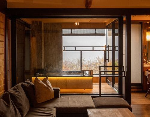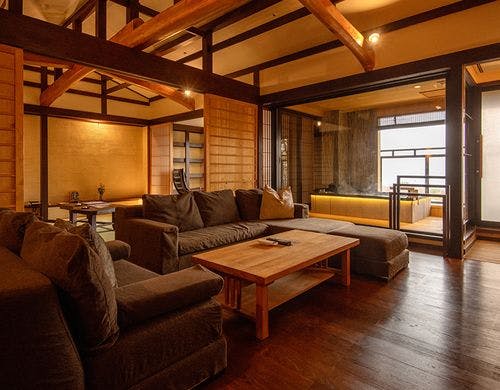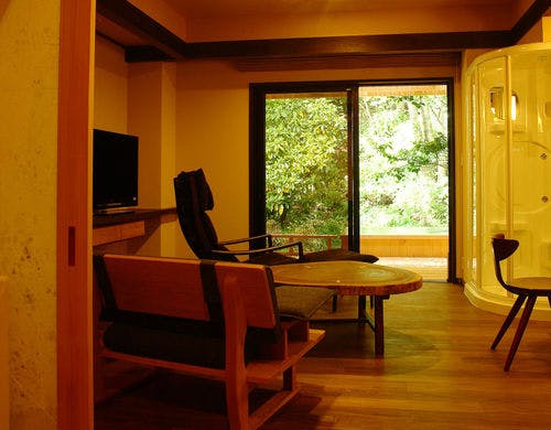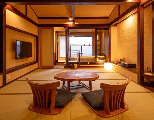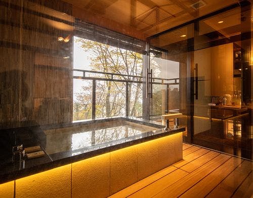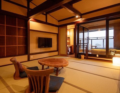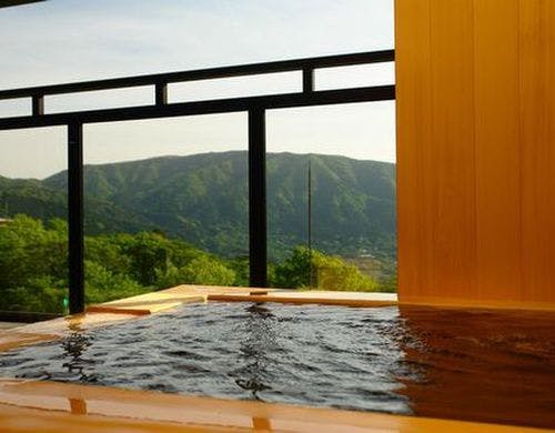全館禁煙。自家源泉掛流し客室露天風呂を全室に備え、箱根西麓野や相模湾の幸を巧みに盛込む京会席に舌鼓。