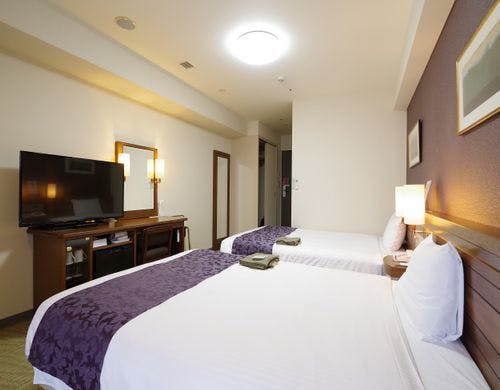 客室は落ち着いたデザインで、シングル、ツイン、デラックスツイン/トリプル、和室といった多彩なタイプが用意されています。デュベスタイルの羽毛布団やシモンズ製マットレスを採用し、快適な睡眠環境を実現しています。Wi-Fi完備に加え、非接触型カードキーを導入することで、利便性と安全性を両立させています。