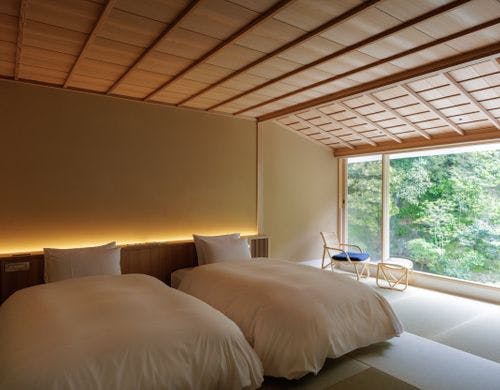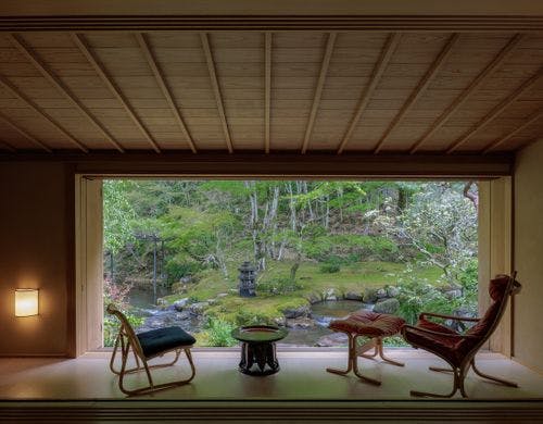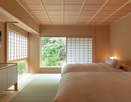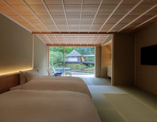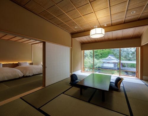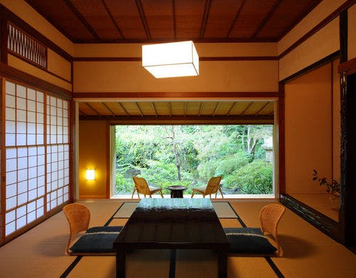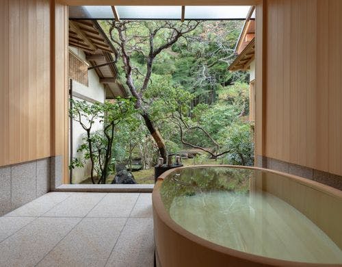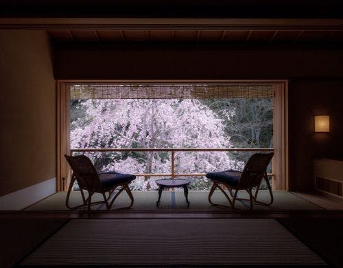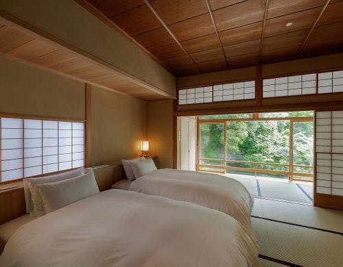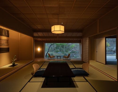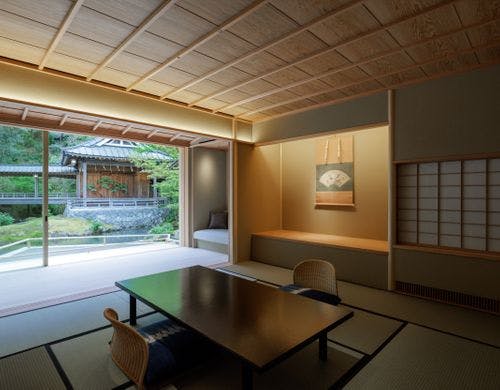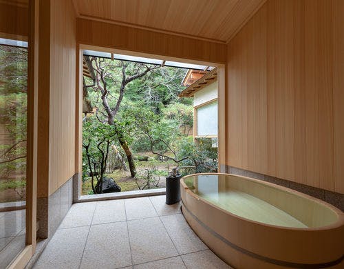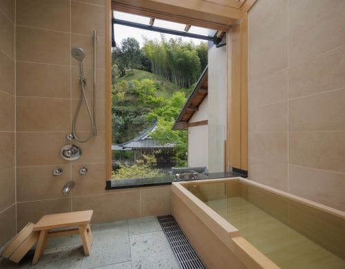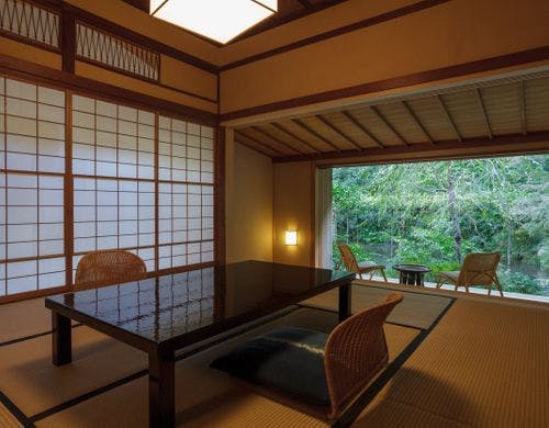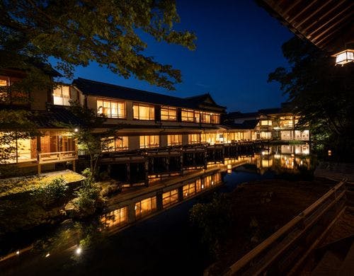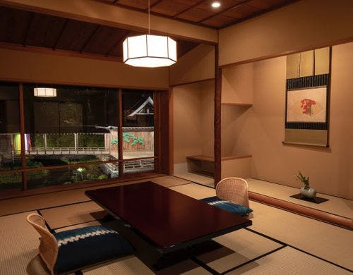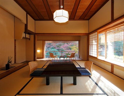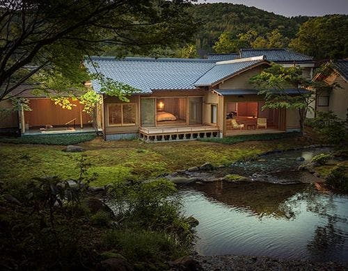 伊豆の小京都と称される修善寺の桂川沿いの温泉地に佇む「あさば」は、500年以上前、浅羽弥九郎幸忠が修禅寺曹洞宗開山のために当地を訪れ、堂守のかたわら門前に開いた宿坊に始まる老舗旅館です。客室からは木々のさえずりや川のせせらぎなどの四季の風情を感じられます。竹林と池を望める野天風呂や貸切風呂などがある温泉は、日本百名湯に選ばれる修善寺温泉の湯を源泉掛け流しで堪能できます。四季折々の旬の食材を活かした特別料理を用意しており、特別なひとときを過ごすことができます。修善寺駅から車で約7分。