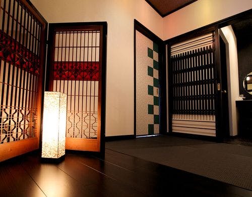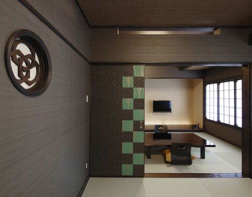 非日常の美しい空間に包まれ、デザイナーが手掛けた和モダンの部屋で心ゆくまでくつろぐ。 貸切風呂の贅沢な時間が旅の彩りに。