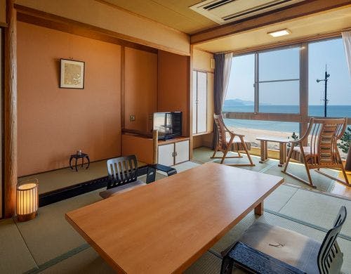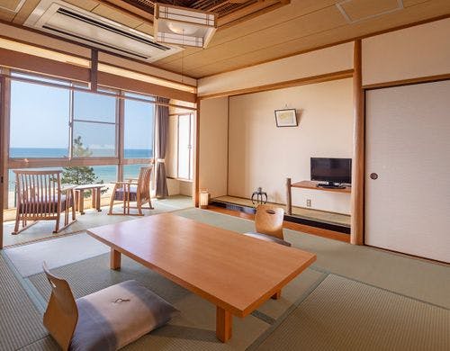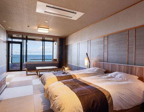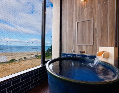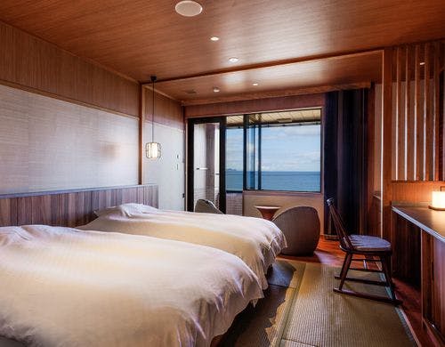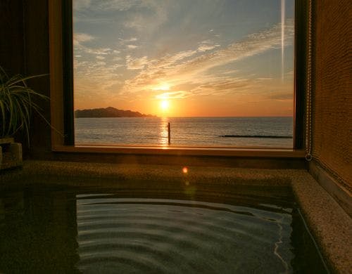 絶景夕日の海岸まで徒歩30秒!丹後但馬の旬会席と夕日、美食と温泉に癒される。どこか懐かしくて落ち着く和モダンの海辺の宿