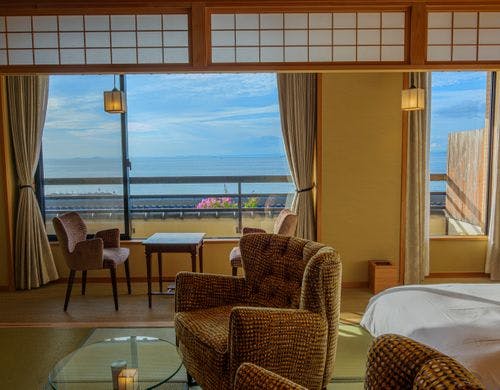 五感が満たされる、至福のひととき<br>御食国・淡路島が育んだ旬の恵みを味わい、悠久の時を経て受け継がれる“くすしの湯”に癒される。<br>播磨灘に沈む夕日に心奪われ、大地と海が奏でるやさしい響きに、身をゆだねる。<br>自然に包まれる贅沢を、心ゆくまでお楽しみください。