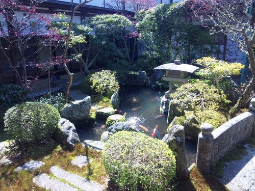 世界遺産の高野山でのひとときを本覚院の宿坊で...明治の有名な作庭家、重森三怜氏のお庭を眺めたり、ゆっくりと精進料理を味わったり・・・修行体験も高野山ならではの楽しみ方のひとつ。