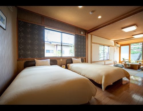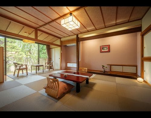 全館平屋の贅沢な造りの宿。露天風呂付き客室「みちのく亭」スタンダード客室「紅花館」からお選びいただけます。