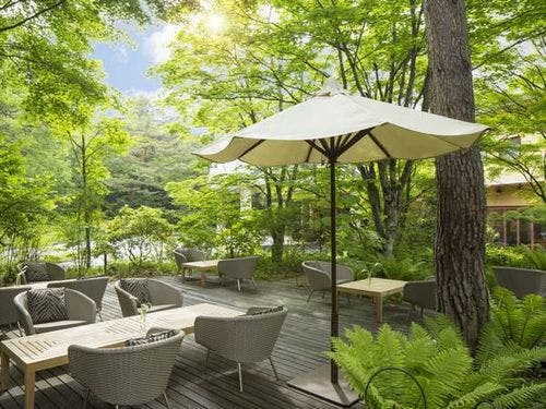 軽井沢の美しい緑に囲まれた非日常の空間で、迎賓文化に培われた上質なおもてなしと、季節の素材をふんだんに使い細部にまでこだわった特別なフレンチで、「美食の滞在」をお楽しみいただけます。