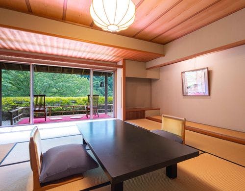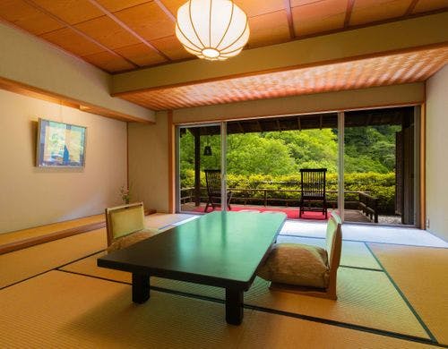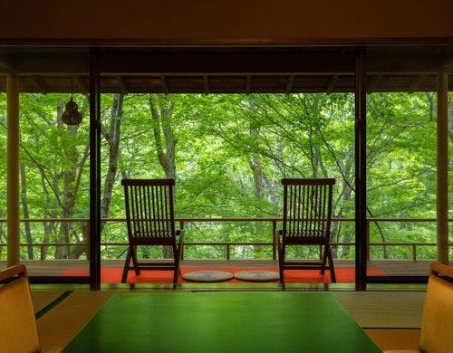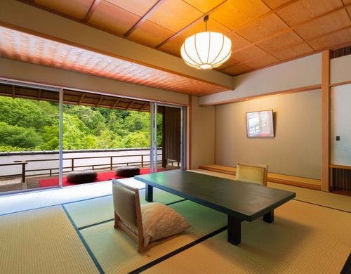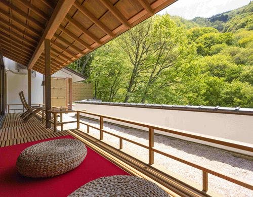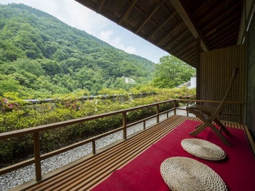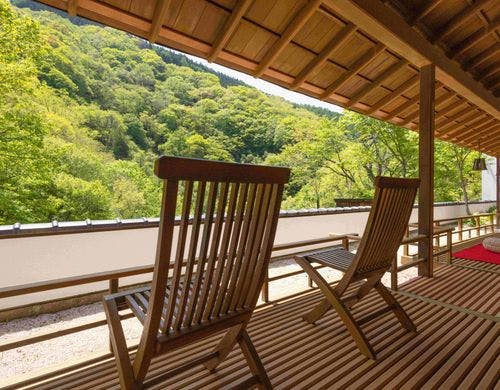 眼下100米の松川渓谷に全室面した数寄屋造りの山の湯宿です。四季折々変化する大自然の中に、身も心も埋めて疲れをいやすことが出来ます。