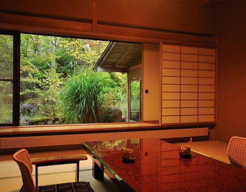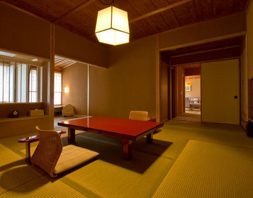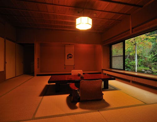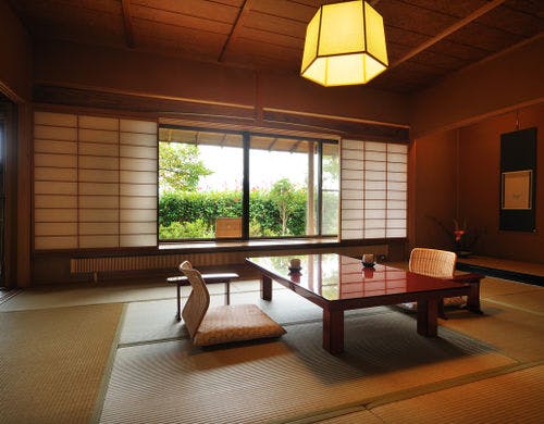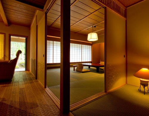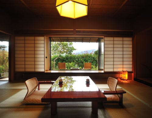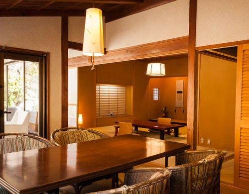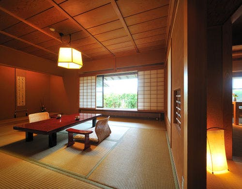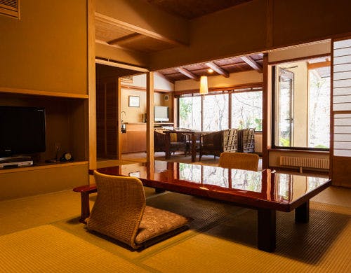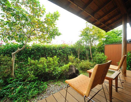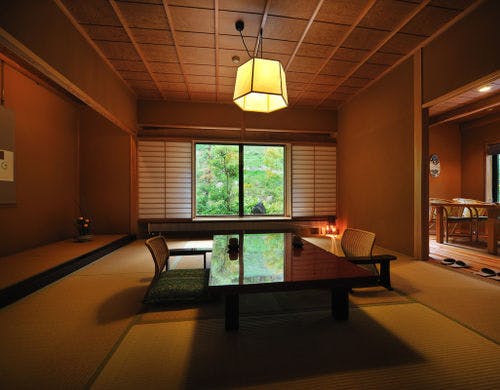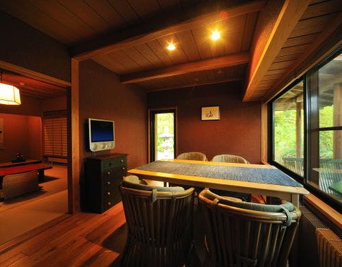 ★3種貸切風呂無料★全室『椅子・テーブル』客室にてお食事をご用意【純和風の本間と洋風リビング】を備えた森のリゾート旅館