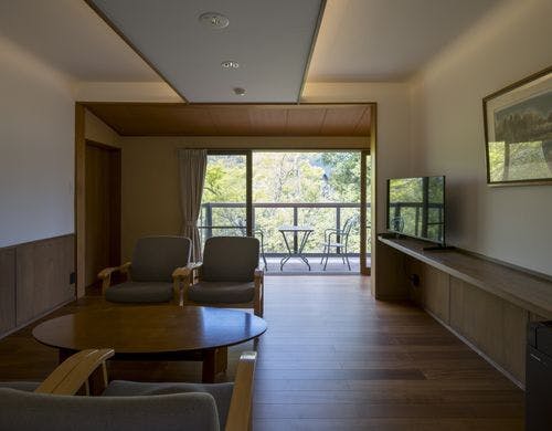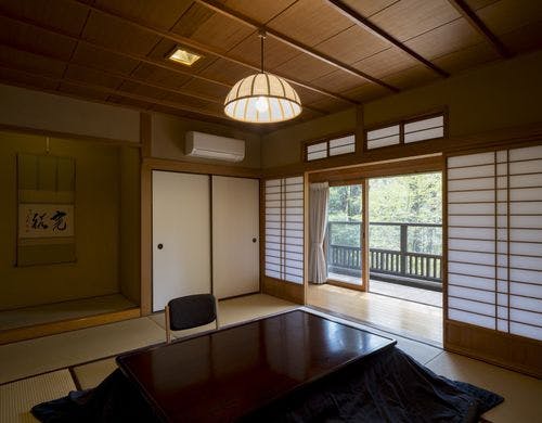 3000坪の雑木林の中、温泉かけ流しの内風呂を完備したお部屋となつかしい山里料理をご用意してます。