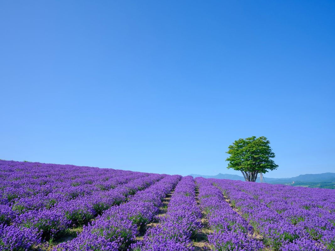 富良野観光のベストシーズンは、ラベンダーの見頃である7月中旬~下旬です。ラベンダー園のいちばん人気は「ファーム富田」。オンシーズンの土日は駐車場に入るために大行列ができるので、時間の余裕を持って行動した方が良いでしょう。なお、駐車場は24時間解放されており、料金は無料です。夏期シーズンの土日祝日に行く場合は、JR富良野駅から臨時列車「富良野・美瑛ノロッコ号」に乗り換えてラベンダー畑駅で下車。その後、徒歩約7分でファーム富田に着きます。ファーム富田の園内には「トラディショナルラベンダー畑」を中心に、花畑が10ヶ所ありますが、おすすめは「彩りの畑」。ラベンダー(紫)、カスミ草(白)、ポピー(赤)、コマチソウ(ピンク)、カリフォルニアポピー(オレンジ)など、色とりどりのお花が絨毯のように広がっている様子は、まさに絶景。園内の散策はおおよそ1時間ほど。歩き疲れた後には、休憩がてらスイーツを食べるのもおすすめです。園内には、花畑以外にもカフェや売店があり、富良野産や北海道産の野菜を使用したフードメニュー、ラベンダー味のソフトクリームや各種スイーツが楽しめます。中でもおすすめなのは「富良野カットメロン」。ラベンダーが満開の時期はメロンの旬とも重なっているので、甘くておいしいです。