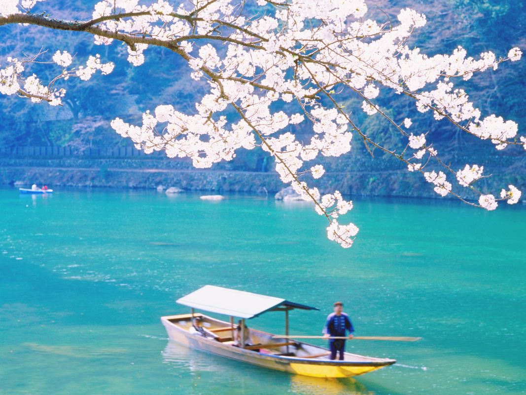 平安時代から愛され続けた景勝地・嵐山。そのシンボルともいえる存在が渡月橋です。桂川に架かる渡月橋は、元は平安初期、法輪寺への参拝のために造られた橋だとされています。そのため、当時は法輪寺橋と呼ばれていたのだとか。また、この辺りでは貴族たちが月を愛でながら舟遊びを楽しんだといわれています。渡月橋と呼ばれるようになったのは、鎌倉時代から。川のほとりに離宮を造営した亀山天皇が満月の夜に舟遊びをしていると、月が弧を描いて夜空を渡っていくその様と、弧を描いて川に架かる橋の形が似て見えたことから「くまなき月の渡るに似る」と詠み、そのことが渡月橋の名前の由来になったと伝わります。背後にある嵐山との調和は素晴らしく、季節を変えて訪れるとさまざまな表情を見せてくれます。春には山に咲く桜が彩りを添え、夏には深い緑と清らかな川の流れに一層涼を感じ、秋には真紅に染まる紅葉が水面に映り、冬に山全体に雪化粧を施したモノクロームな世界を見せてくれます。その四季折々の表情の美しさに、映画やドラマのロケ地として使われることもしばしば。こうした景色を写真に収めたいならおすすめなのは、渡月橋の北側。渡月橋と桂川、そして嵐山を一望できる絶好のフォトスポットですよ。また、毎年夏には桂川で鵜飼が行なわれ、屋形船からその様子を見ることもできます。平安時代に貴族が楽しんだといわれる舟遊び気分で、屋形船に乗ってみるのもおすすめですよ。渡月橋へは、京福電鉄(嵐電)嵐山駅から徒歩約3分です。