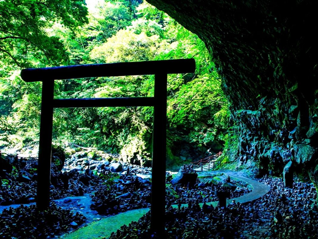元乃隅(もとのすみ)神社は山口県長門市にある神社。1955(昭和30)年に地域の網元であった岡村斉(おかむらひとし)の枕元に現れた白狐のお告げにより建立され、商売繁盛、大漁、海上安全のほか、良縁、子宝、開運厄除、福徳円満、交通安全、学業成就などのご利益があるといわれています。1987(同62)年から10年間かけて奉納された123基の赤い鳥居が、高台から海に向かって100m以上連なる光景は圧巻。2015年にアメリカのニュース専門放送局CNNで「日本の最も素晴らしい場所」に選定され、世界中から多くの観光客が訪れる絶景スポットとして知られるようになりました。境内にある高さ約6mの大鳥居の上部には賽銭箱が設置されており、賽銭を見事投げ入れることができれば願い事が叶うとされています。また、参道入口近くの岩場では海水が約30m吹き上がる「龍宮の潮吹」が見られることも。