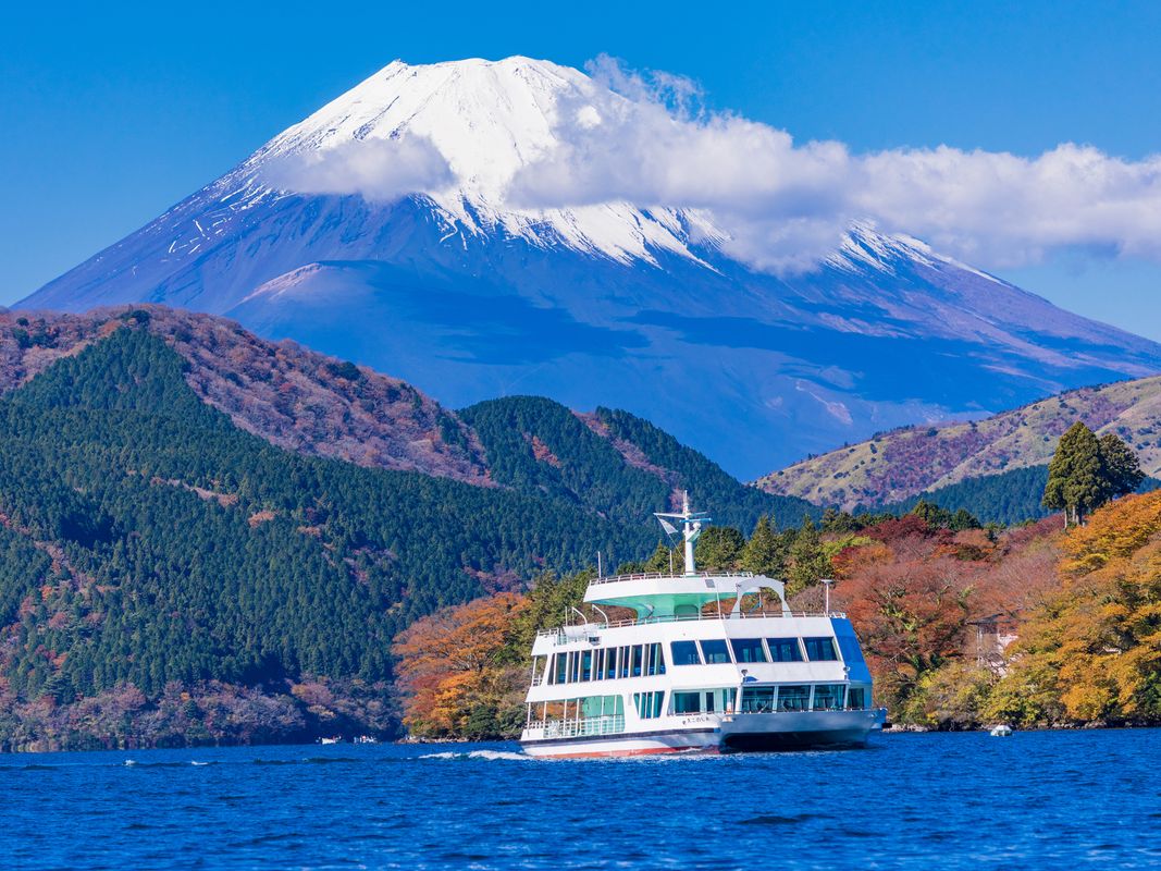今も昔も、箱根のシンボルである芦ノ湖。ここでの楽しみの目玉である「箱根海賊船」が発着する元箱根港と箱根町港、桃源台港は、箱根のおもなエリアと路線バスで結ばれています。さらに桃源台港へは、箱根登山鉄道~箱根登山ケーブルカー~箱根ロープウェイと乗り継いでもアクセスOK! 車がなくても、気軽に足を運べるのが大きな魅力です。南北に細長く伸びる芦ノ湖は、北側へ向かって、箱根の山並み越しに見える富士山が美しい湖です。ただ湖岸から眺めると、手前の山並みで富士山の半分ほどが隠れてしまいます。そこで、ドライブで訪れたいおすすめの展望スポットが、南岸の背後にそびえる大観山の山頂付近の「大観山展望園地」(見学自由)。小田原と箱根峠付近を結ぶ有料道路「アネスト岩田ターンパイク箱根」のゲート近くにありますが、この有料道路を利用しなくても入場できますよ。標高1011mの高所にあるこの展望地からは、箱根外輪山に縁どられた湖の輪郭がしっかりと見え、大きく広げた富士山の裾野までが一望のもと。湖岸とは印象の異なる、雄大な風景を目の前に見ることができます。夕方と朝の気温差が大きくなる晩秋~早春にかけて、朝霧や雲海を写真におさめようと愛好家が集うことでも有名ですよ。また、一度は見てみたいレアな富士の風景「逆さ富士」が見られるのも、芦ノ湖ならではです。この現象が見られるのは空気が澄み切った真冬の晴天日で、風がなく湖面が鏡のように静まり返った朝。「元箱根港」周辺の湖岸から、水面を境に上下が対称となった神秘的な富士山が出現します。異なる時間や季節に訪れて、千編万化する風景を楽しんでみましょう。