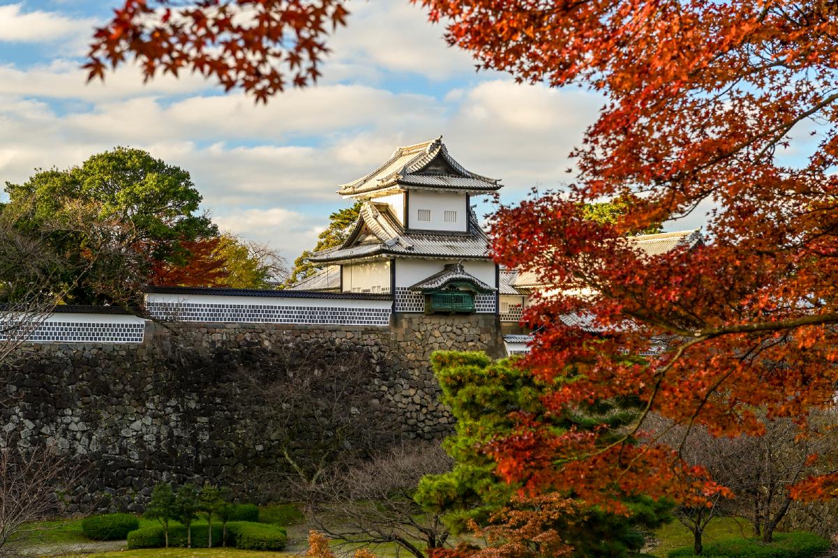 金沢の観光地として有名な兼六園は、もともと加賀藩前田家の居城「金沢城」の庭としてつくられたものです。庭があれだけ広大なのですから、居城の金沢城はさぞやと思われるでしょうが、残念ながら建造物のほとんどは度重なる火災により失われてしまいました。重要文化財である石川門や三十間長屋(さんじっけんながや)など、焼失を免れたほんの一部が江戸時代の遺構として残り、金沢のシンボルとして守られてきました。歴史の表舞台からは退いた時代が長かった金沢城ですが、平成になってから「河北門(かほくもん)」「菱櫓(ひしやぐら)・五十間長屋(ごじっけんながや)・橋爪門続櫓(はしづめもんつづきやぐら)・橋爪門」「玉泉院丸庭園(ぎょくせんいんまるていえん)」などが、絵図や文献などをもとに忠実に復元され、在りし日の金沢城を目にすることができるようになったのです。巨大な復元城郭がそびえる様は圧巻で、歴史好きでなくともテンションが上がります。なかでも3年4カ月もの歳月をかけて復元された「菱櫓・五十間長屋・橋爪門続櫓」は明治以降に建てられた木造城郭建築物としては全国最大規模を誇り、内部の見学も可能(9:00-16:00、320円)です。釘やボルトを1本も使わず巨大な建造物を築いた匠の技や、菱形の櫓を造るために菱形の柱を使った工法など、高度な技術には目を見張るものがあります。城郭と公園の復元や整備は現在も進められており、最近では2017年に全面ガラス張りで城郭を一望できる休憩所「鶴の丸休憩館」が完成しました。和カフェ「豆皿茶屋」も併設しており、食事から加賀棒茶や金沢珈琲、金箔ソフトまで、金沢らしい味わいが楽しめます。また金沢城は全国でも屈指の多種多様な石垣が見られることから「石垣の博物館」とも言われています。園内には石垣だけを展示・解説する一画もあり、その奥深さに驚かされます。嬉しいのは、毎週金曜と土曜、祝前日の夜などにライトアップされた園内を夜間開園(日没-21:00まで)している点。週末の旅行ならぜひ足を運んでみましょう。周囲には多くの有料駐車場があるので、広大な公園のどこから入って何を見るのかを、あらかじめ決めて入園するといいかもしれません。これほど見どころに富んでいながら、入園が無料なのも魅力です。