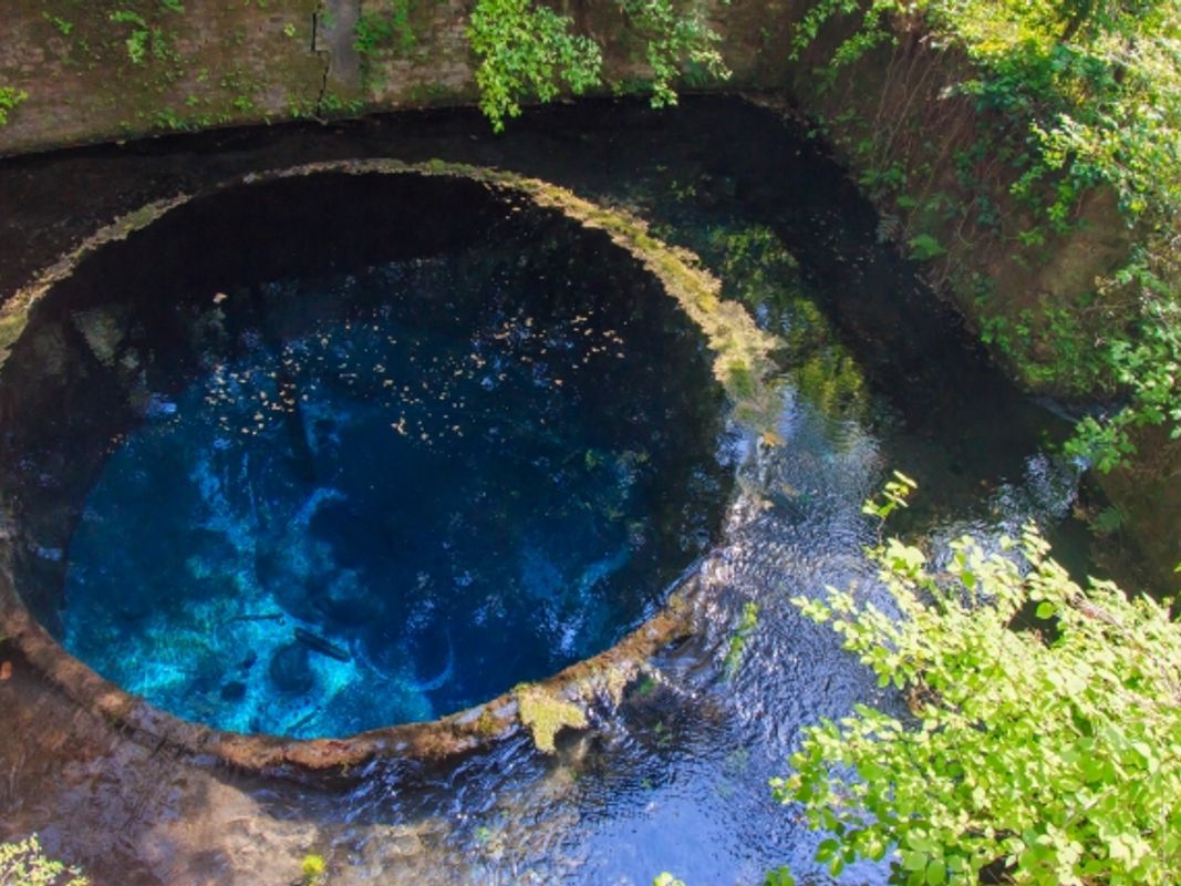 冨士山本宮浅間大社(ほんぐうせんげんたいしゃ)は、全国に1,300もある浅間神社の総本宮であり、富士山信仰の中心地。紀元前27年頃、富士山の大噴火を鎮めるために建てられたのが始まりです(その後、場所は現在の地に移動)。神社のすぐ北側の住宅地には、富士山噴火の溶岩の末端崖(まったんがい)が見られ、噴火の威力を感じることができます。鳥居の前に立つと、晴れていれば右後方に富士山が見えます。富士山が見える確率が高いのが冬で、次いで初春や晩秋です。ただ、鳥居のそばに、富士宮やきそばの簡易食堂もあり、いつでも楽しめる場所。富士山の気が留まる龍穴に位置し、人の気持ちを明るくし、愛情運や対人関係に効能があるとされるパワースポットです。冨士山本宮浅間大社の本殿は、神社としては珍しい2階建てです。大きな三角の屋根が特徴の1階屋根部分は、寄せ棟造りと呼ばれ、富士山の形を模して作られています。三角の屋根の奥に配置された2階は、富士山のさらに上にある聖なるものを表しているとされています(諸説あり)。順路を進むと湧玉池(わくたまいけ)へ。富士山に降った雨や雪が、15年ほどかけて湧き出しているというこの池は、かつては信仰のための富士登山前に、身を清める場所でした。