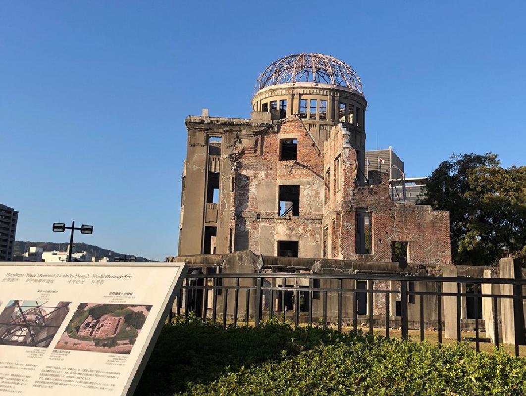 原子爆弾(以下、原爆)の残酷さと戦争の愚かさを伝える、日本を代表する「負の世界遺産」です。繁華街から平和記念公園に向かうと、まず姿を見せます。広島にアメリカの原爆「リトルボーイ」が投下されたのは8月6日の8時15分。わずか1発で14万人以上の命を奪い去った原爆は、ドームの約160m先に投下されました。上空で炸裂した原爆は地上を焼き尽くし、朝ごはんを食べる人や通勤通学で歩く人たちを影に変え、秒速440m以上の爆風で街路樹や建造物を灰燼に変えました。爆心地周辺の地表温度は3,000~4,000℃だったといわれています。そのような中で原爆ドームが屹立できた理由は複数ありますが、ほぼ上空で炸裂したため衝撃波が横ではなく縦に伝わった事、窓から爆風が抜けて衝撃が緩衝された事などが挙げられております。紛れもなく奇跡の存続。平和記念資料館に展示されている被爆直後の写真は、原爆ドームが完全な破壊を免れた奇跡の建物である事を明確に伝えてくれます。ただ、ドームの姿を見ると意外にも瀟洒に映るため、初めて見た人は不思議に思われるかもしれません。何故洋風の瀟洒な建築であるかは、チェコ人の建築家ヤン・レッツェルによって設計されたため。もともとは県の名産品を並べる広島県物産陳列館と言う建物でした。現在は穏やかなたたずまいを見せていますが、地面にはガレキが散らばっており、静かに、しかし強いメッセージを発しております。以前より欧米からの旅行者が多いのですが、その姿を見る度、胸が熱くなります。1960年代には取り壊す案も出たそうですが、保存して正解だったのは間違いないでしょう。広島を訪れる方には、必ず訪問してほしい場所です。なお、繁華街エリアから広島平和記念資料館に歩く際は、平和大通りよりも原爆ドームを経由して、公園を歩いて向かうのがおすすめです。