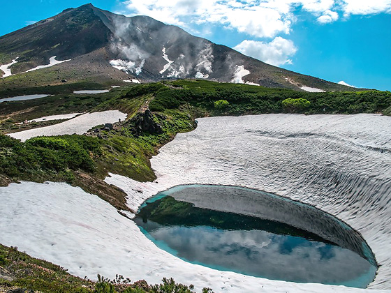 大雪山連峰旭岳は6月までは残雪、8月からは紅葉と季節がギュッと詰まっています。ロープウェイで標高1600mまで登れば高山植物の天国!9月には降雪があるので服装に注意です。