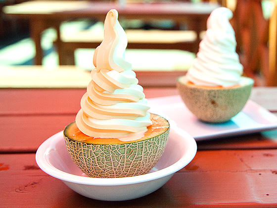 美瑛から富良野へ向かう国道沿いにある「ポプラファーム」の看板メニュー。メロンの産地・富良野らしく甘ーーーい富良野メロン1/2カットにソフトクリームを載せたインパクト大の北海道らしいスイーツです。定番のバニラの他、メロンやミックスも選べるのでお好みで!旬の野菜やメロンの直売もあるのでお土産にいかがですか?