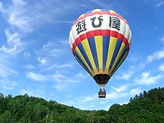富良野の田園風景の向こうには勇壮な十勝連峰が望まれます。気球は4点のロープで固定されていますので、少し高い所が苦手な方でも安心です。