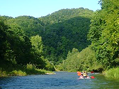 ラフトボートより小さいボートに2人で乗り込み、自分で舵をとりながら漕いでいくスポーツです。