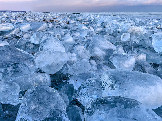 豊頃町大津海岸で見られる現象で十勝川が凍り、割れた氷が海を漂流し波によって海岸に打ち上げられる光景が幻想的で「ジュエリーアイス」とも呼ばれています。透明で輝きを放つその様はまさに宝石のようなんです!氷のぶつかり合う音も幻想感を増長させています。この光景を一目見ようと朝早くから人が押し寄せる事も!!