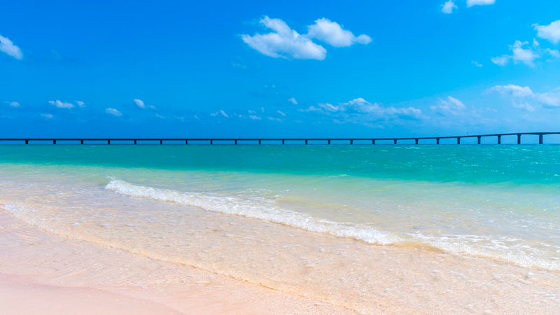 2つ目の橋は来間島へとつながる来間大橋。来間島にある長間浜(ながまはま)は、沖縄の原風景が感じられる穴場のビーチです。そして3つ目は池間大橋! 3本の橋のなかで一番最初(1992年)に開通した池間大橋では、ドライブだけでなく風を感じながらサイクリングを楽しむのもおすすめですよ。