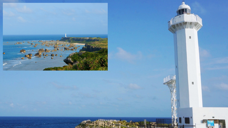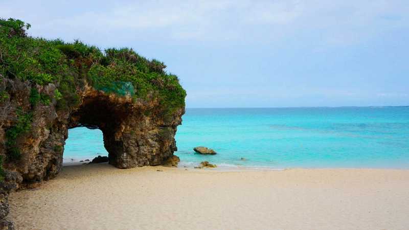 そして定番観光スポットして欠かせない、砂山ビーチと東平安名崎(ひがしへんなざき)。砂山ビーチは名前の通り白砂の山を越えて向かいます。越えた先で突如視界に飛び込んでくる特徴的なアーチ型の岩と青く輝く海は、思わず息をのむ美しさ! ジャングルを突き進むかのような道を進んで向かうビーチは、定番スポットなのにまるで秘密基地を見つけたような高揚感が味わえるイチ押しの場所です。また、島の南東端に位置する東平安名崎は、日本百景にも選ばれている絶景スポット。岬へとまっすぐ延びる車道と、その先にある海を背景にして映える白い灯台の姿には気分が上がりますよ。
