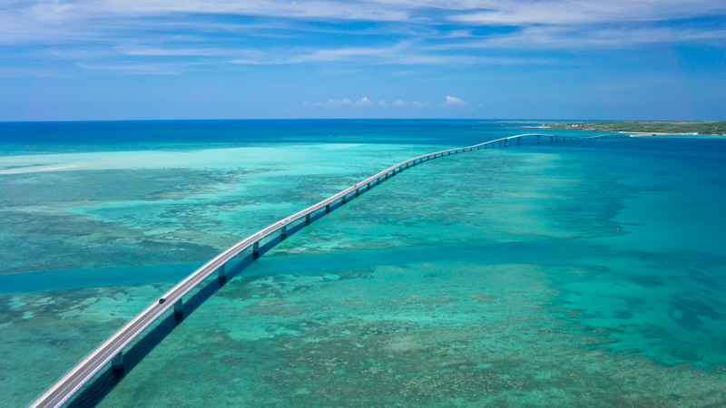 伊良部大橋。海の上を走るこの爽快感をぜひ体験してほしい