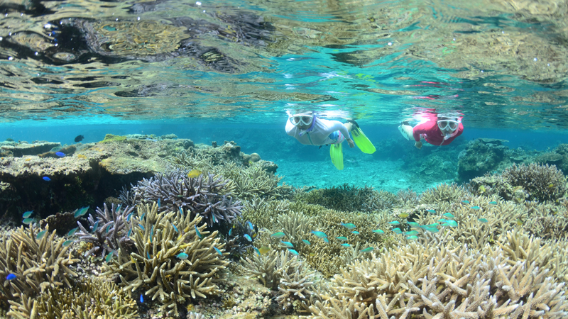 浅瀬でも魚や珊瑚が見られる宮古島の海は、初心者にもおすすめ
