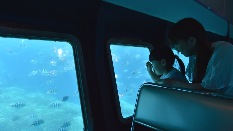美しい珊瑚の海に囲まれた宮古島で体験したいのは、やっぱりマリンアクティビティ! 宮古島の北に広がる巨大なサンゴ礁群、八重干瀬(やびじ)は、透明度抜群でダイバーに人気のスポットです。また、シュノーケリングなら新城(あらぐすく)海岸や吉野海岸が人気。新城海岸は遠浅で初心者やお子様連れにも安心のスポットです。「小さい子供がいるからシュノーケリングは難しい…」「泳ぎに自信がない…」そんな場合は半潜水式水中観光船、シースカイ博愛がおすすめ。服を着たまま約45分間の海中散歩♪ 熱帯魚やサンゴ礁、海ガメの姿を間近で見ることができますよ。
