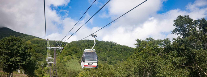 サマーゴンドラで1,000m地点まで上がったあと、頂上まで往復約2時間の軽登山! 元気があればマウンテンバイクに挑戦するのも◎。