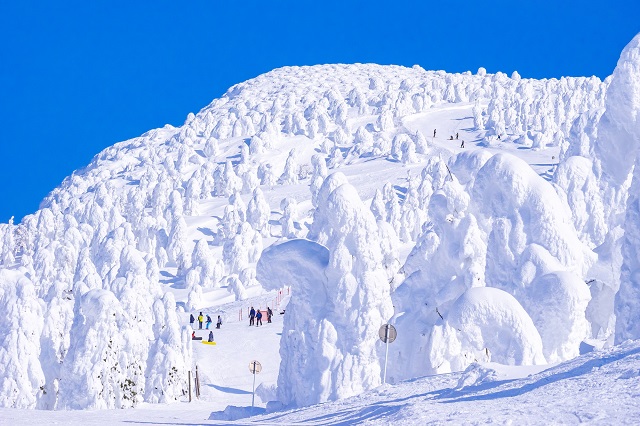 画像提供:PIXTA八甲田山など豪雪エリアが多い青森県。特に八甲田スキー場は12月から5月にかけてロングシーズンで楽しめ、樹氷の間を縫って滑ることができるのも魅力的。周辺には温泉施設も多く、疲れた体を癒やすのも楽しみ。