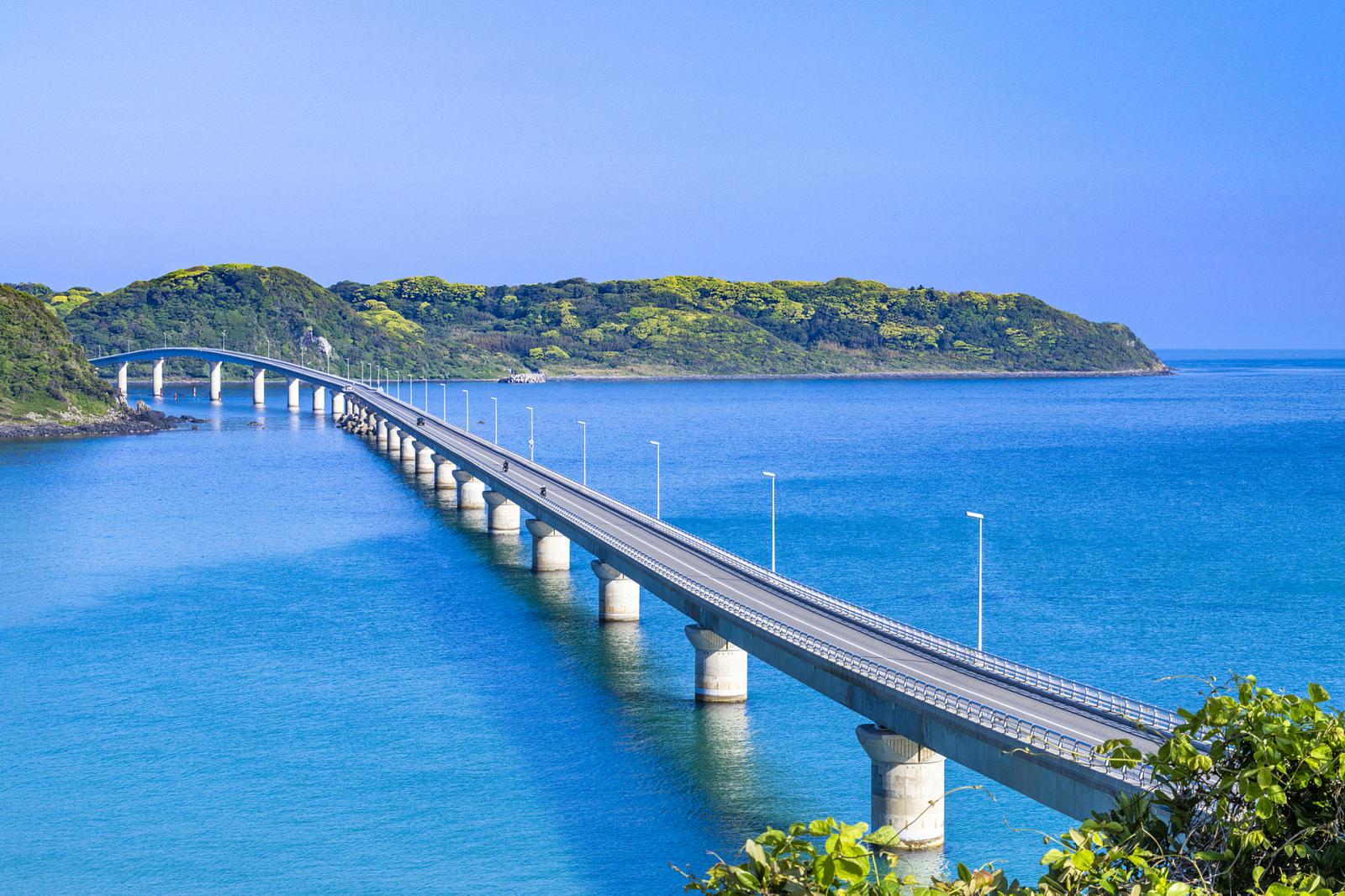 関門海峡周辺には、名物のフグの展示などが充実している下関市立しものせき水族館 海響館や、壇ノ浦の戦いの後、安徳天皇が祭られた赤間神宮といった名所旧跡がめじろ押し。また下関市北西部にある角島大橋は国内屈指の長さを誇り、コバルトブルーの海が印象的な角島とともに人気のスポットです。