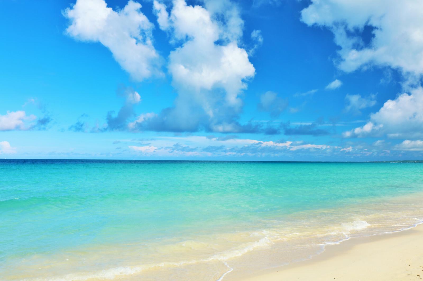 真っ白な砂浜と青い海のコラボが美しい与那覇前浜