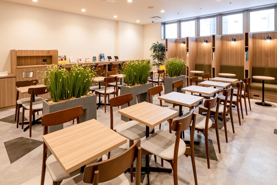 コーヒーやリフレッシュメントドリンクをフロント階のラウンジスペースにてご用意!