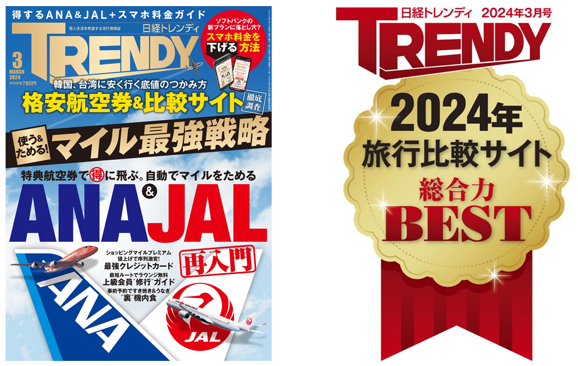トラベルコが「日経トレンディ」 旅行比較サイト調査(2024年3月号)で「総合力 BEST」を獲得!