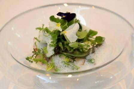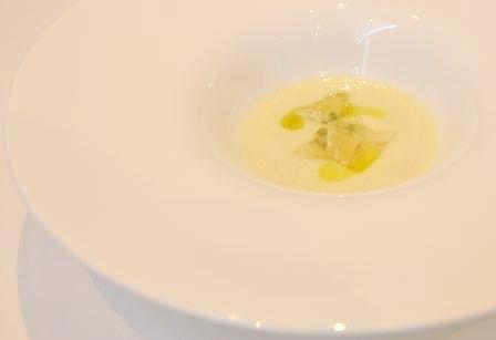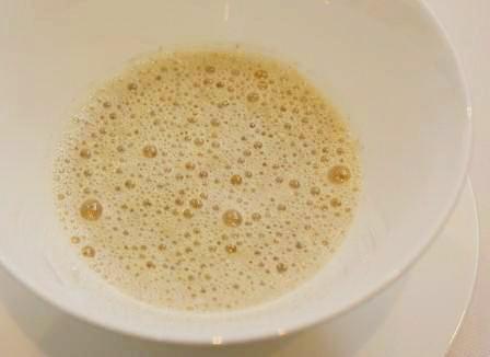 柔らかく蒸したユリ根、黒トリュフエッセンスを含ませた牛乳のエスプーマ