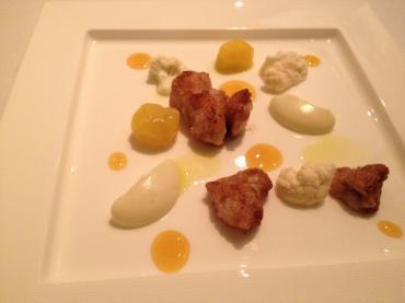 栗のように甘い越冬したインカの目覚めとリードボー、カリフラワーのクロカンとピュレ