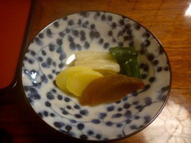 香の物はあっさりした白菜とキュウリ、タクアン、それに香りの強い奈良漬けの4種類。