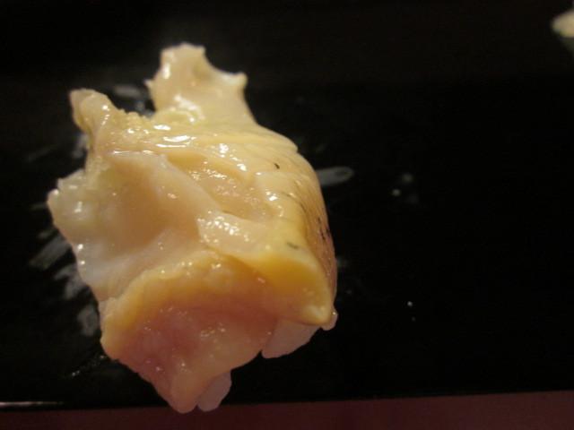 目の前で、ネタの重さで、シャリがほんのわずかですが沈んでいき、