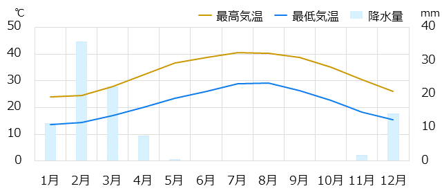 | 遊泳適 シーズン | × | × | ◎ | ◎ | ○ | ○ | ○ | ○ | ○ | ◎ | ◎ | ○ |