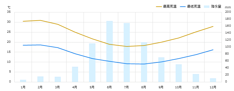暑さに適応する服装。また、日中は紫外線の対策を忘れずに。1月 2月 3月 4月 5月 6月 7月 8月 9月 10月 11月 12月 旅行ベスト